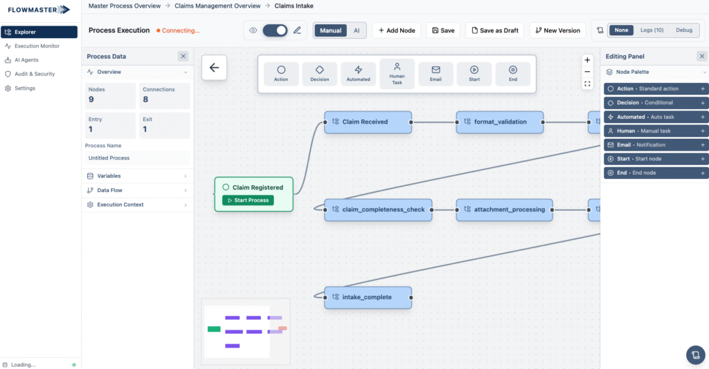 Upload existing processes. Assign agents to tasks. Model workflows using swimlanes, SOPs, and RACI charts that business teams understand.